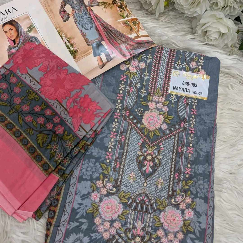 Orginal Indian Mumtaz Arts Embroidery Cotton three piece /-