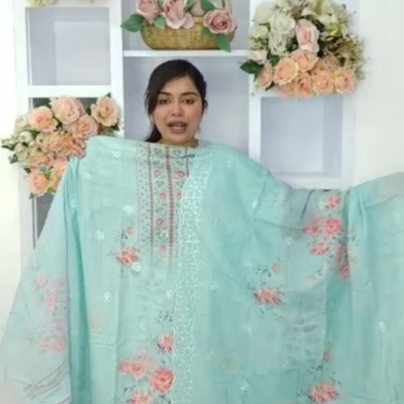 Orginal Indian Mumtaz Arts Chikenkari Embroidery Cotton three piece - Delivery charge free