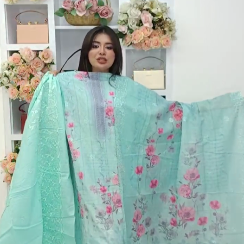 Orginal Indian Mumtaz Arts Chikenkari Embroidery Cotton three piece -