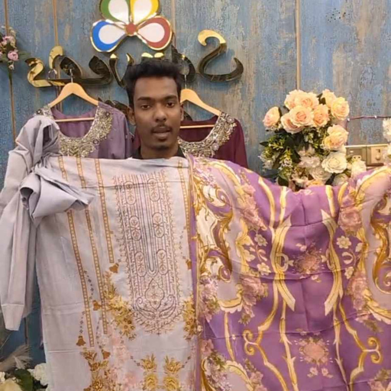 Orginal Indian Mumtaz Arts Embroidery Cotton three piece /-
