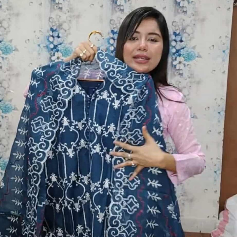 Puru Kota Cotton Inner Attach Embroidery Semi Stitch three piece Body - 48, Long - 45 /-