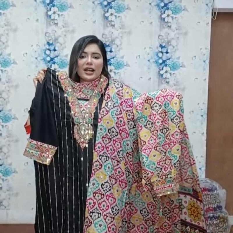 Pure Maslin Cotton Embroidery Sequence Stitch three piece Body - 50, Long - 46 /-