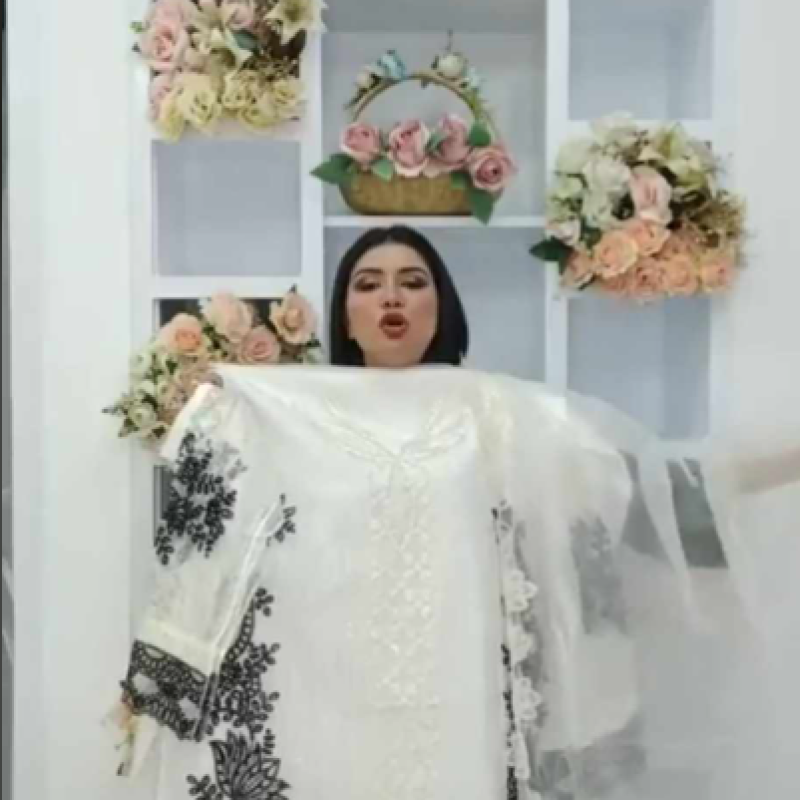 Pure Organza Maslin Embroidery Sequence four piece