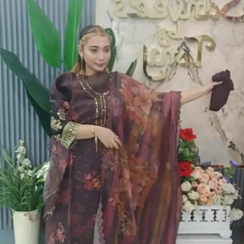 Pure Organza Maslin Embroidery Sequence Inner Attach four piece /-