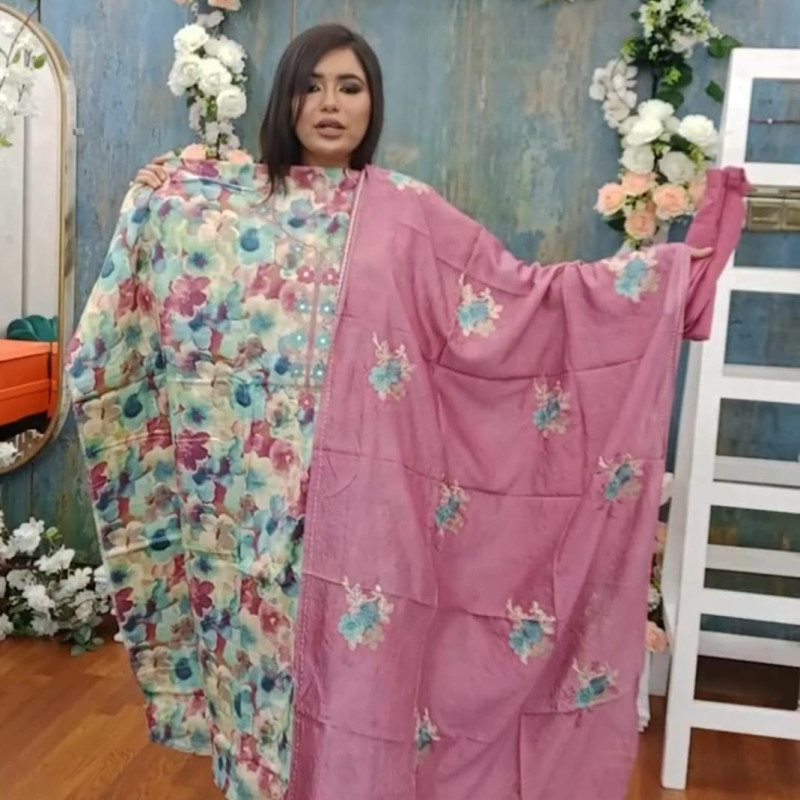 Orginal Indian HARRA Embroidery Cotton three piece