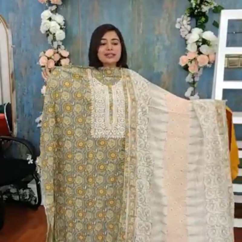 Orginal Indian Joypuri Hand Stitch Work Cotton three piece 2550/-