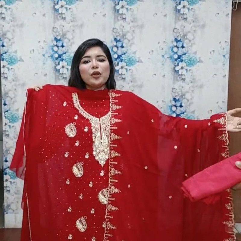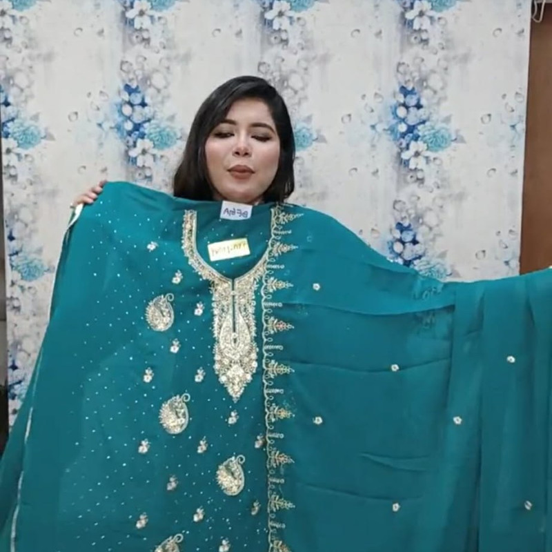 Pure Chiffon Georgette Embroidery Stone Work four piece /-
