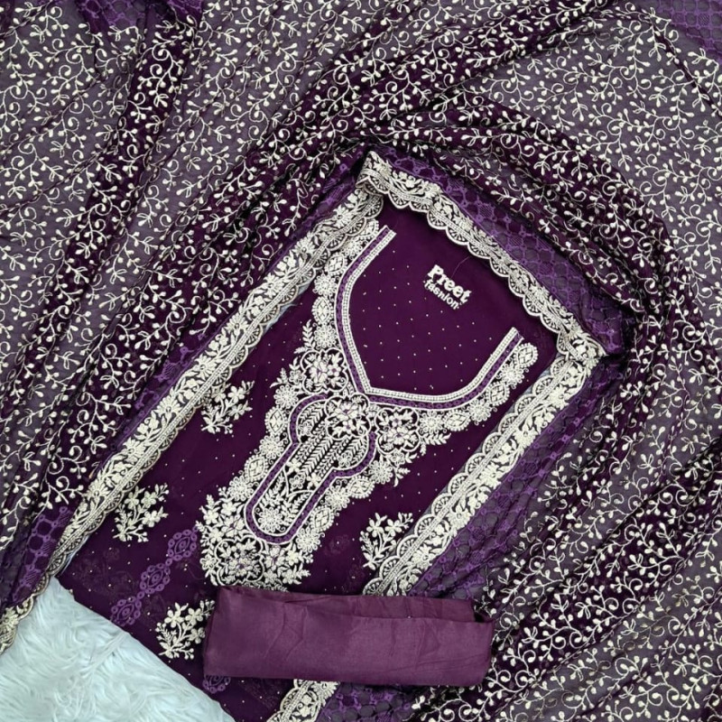 Pure Chiffon Georgette Embroidery Savoraski Stone work four piece