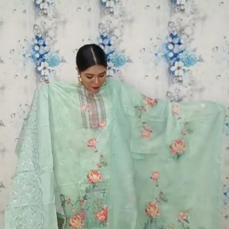 Pure Cotton Chikenkari Embroidery Sequence three piece /-