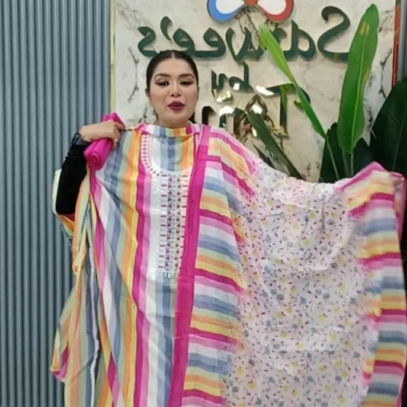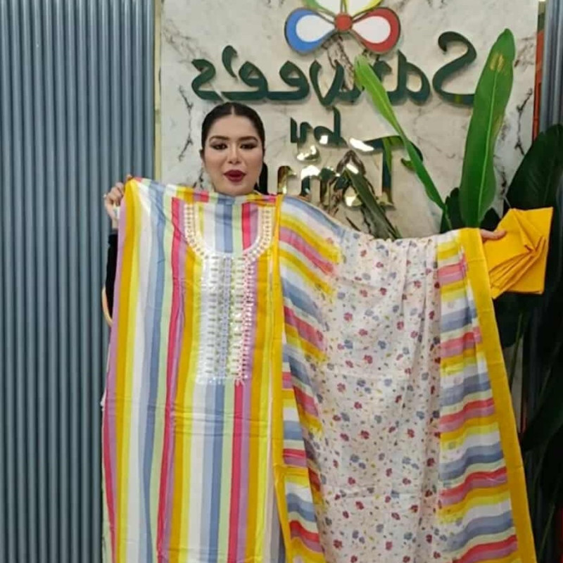 Pure Cotton Embroidery Sequence three piece