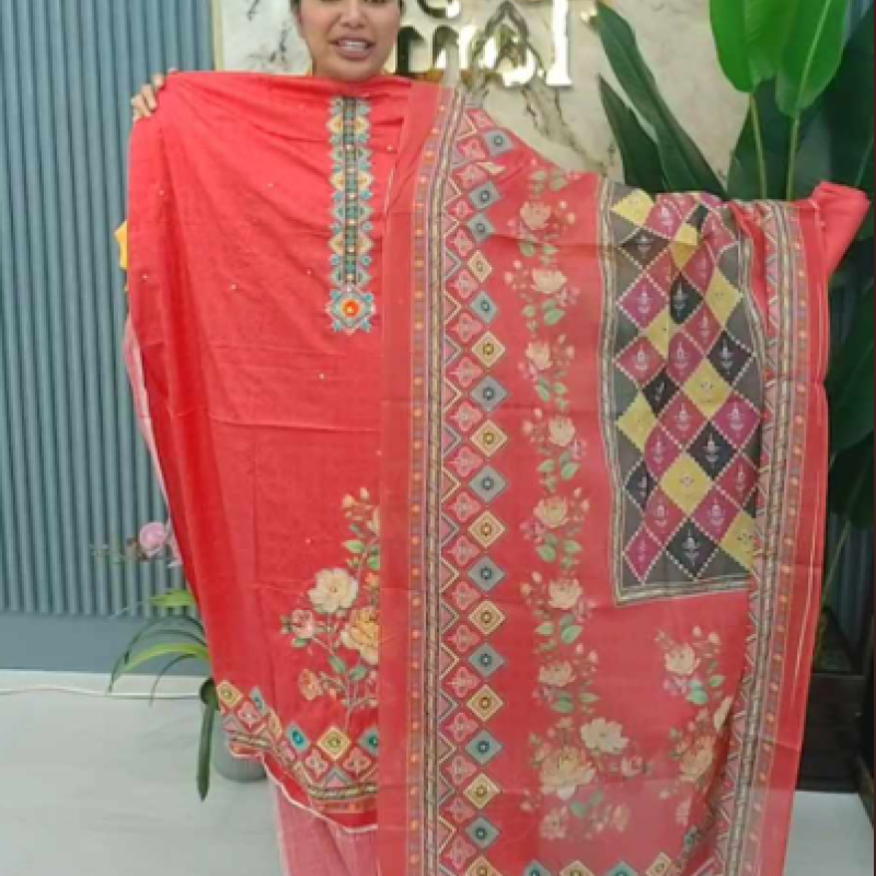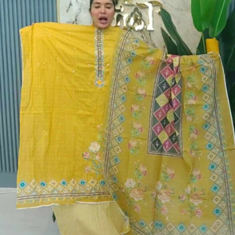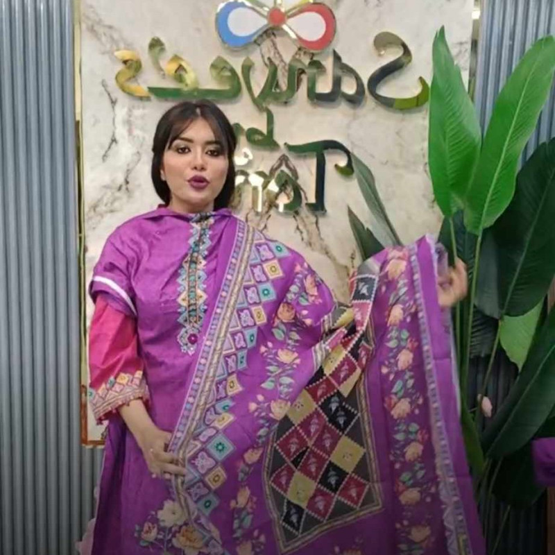 Pure Lawn Cotton Hand Stitch Dollar Work three piece 1380/-