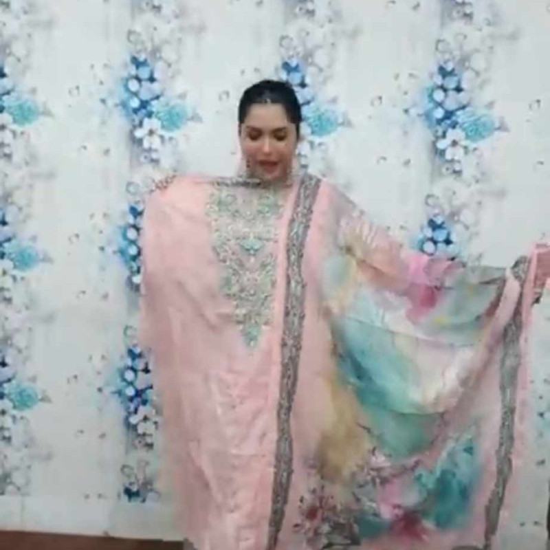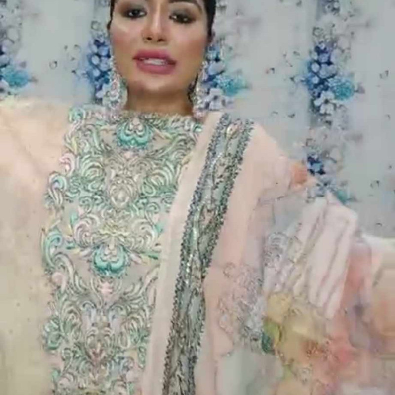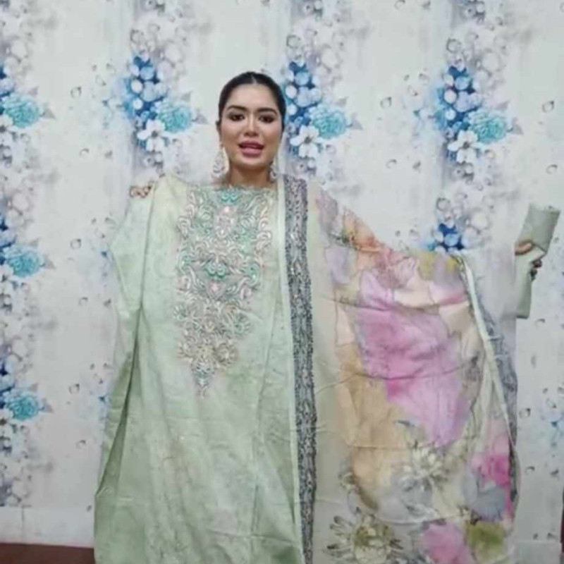 Orginal Indian Pure Maslin Cotton Embroidery Sequence Savoraski Stone work three piece