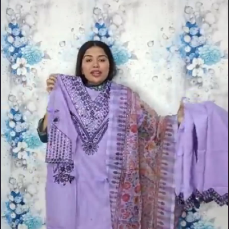 Pure Maslin Cotton Embroidery Sequence Stitch three piece Body - 46, Long - 44-