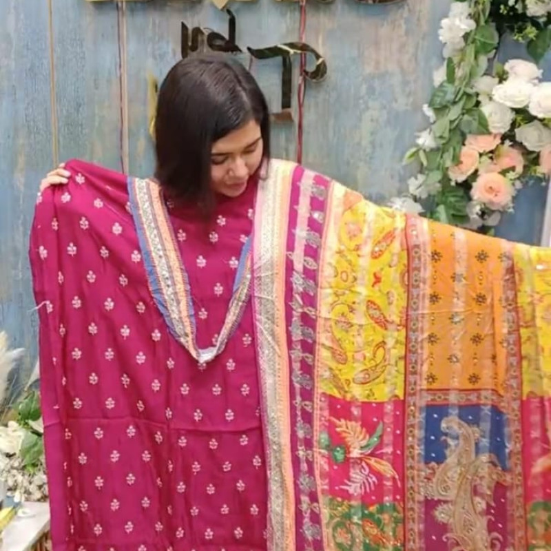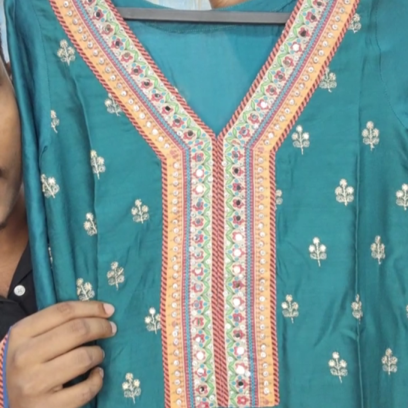 Pure Maslin Cotton Embroidery Sequence two piece /-