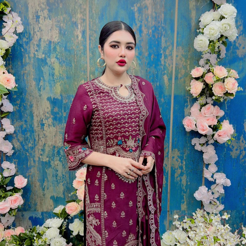 Pure Silk Embroidery Seqeunce Semi Stitch three piece Body - 50, Long - 48