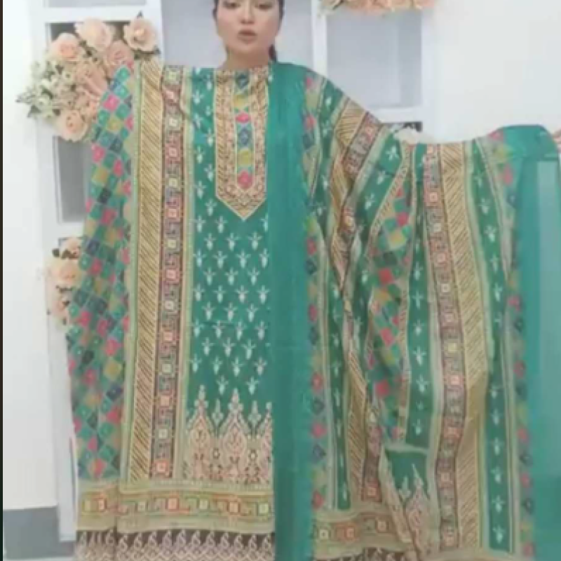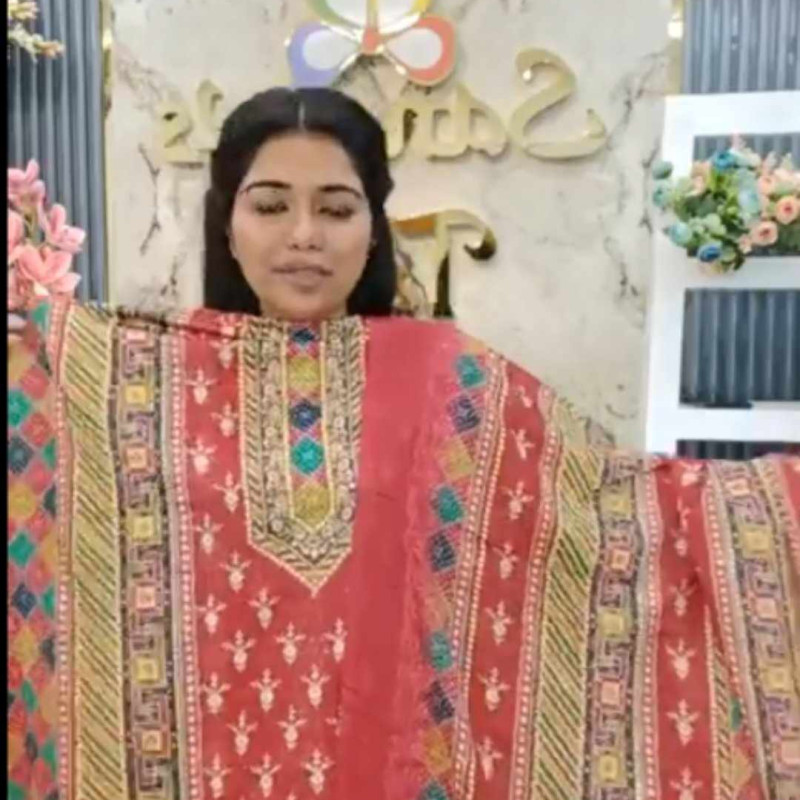 Pure Silk Embroidery Sequence three piece /-