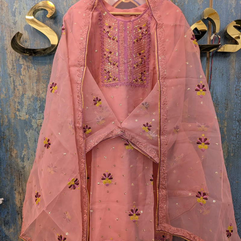 Metarials : Pure Silk & Organza Mixed Three Piece with Embroidery & Sequence Work.