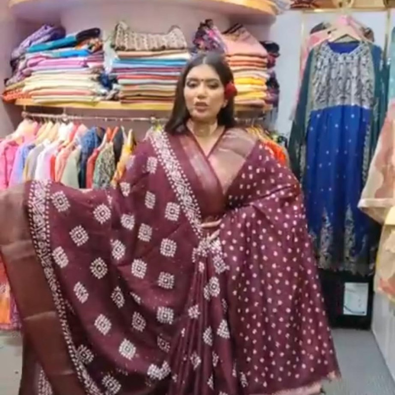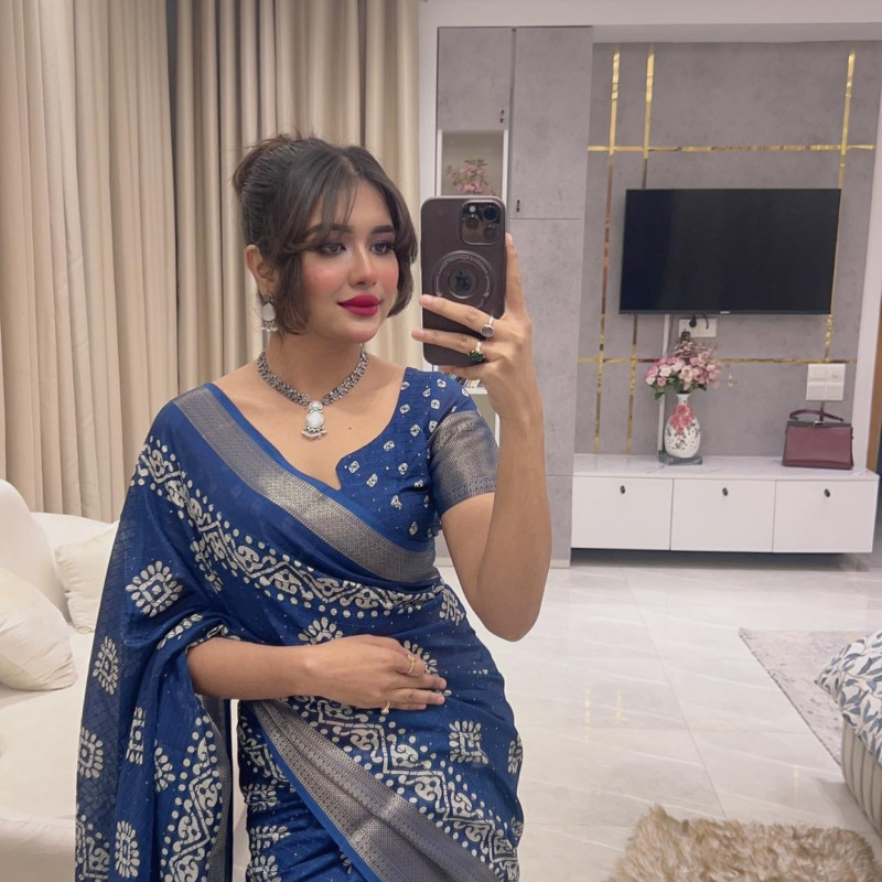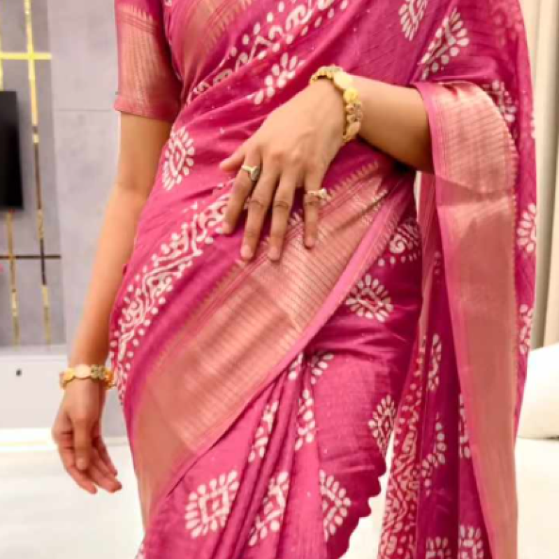 Orginal Indian Raj Silk Villa Crispy Linen Sequence Sharee with blouse piece