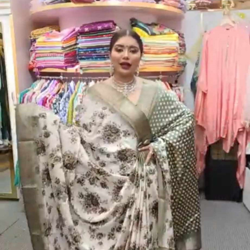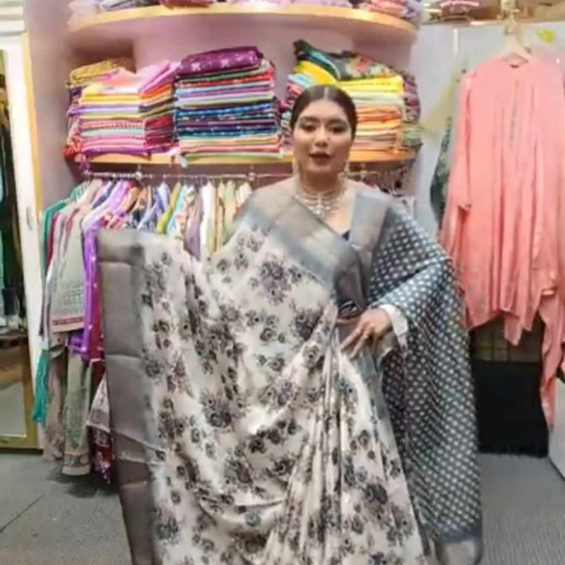 Orginal Indian Raj Silk Villa Crispy Linen Sharee with blouse piece 1850/-