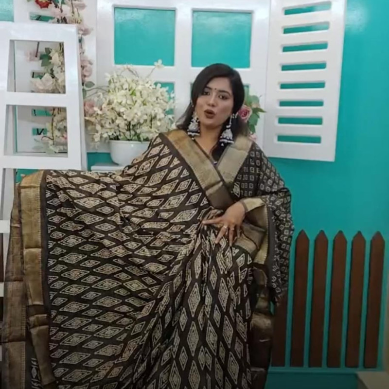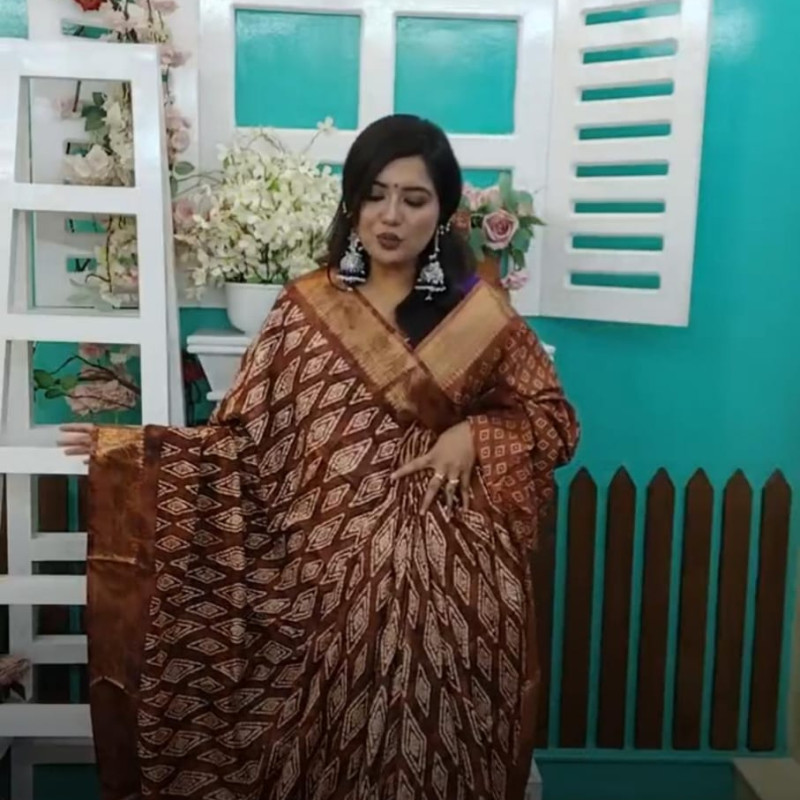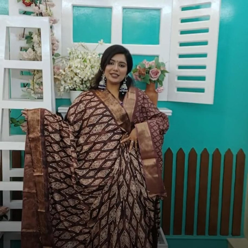 Orginal Indian Raj Silk Villa Crispy Lilen Sharee with blouse piece