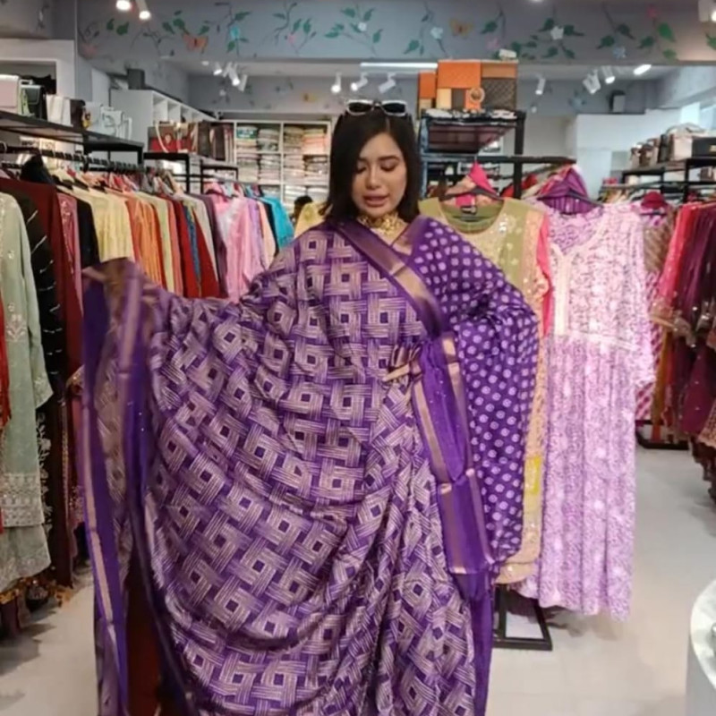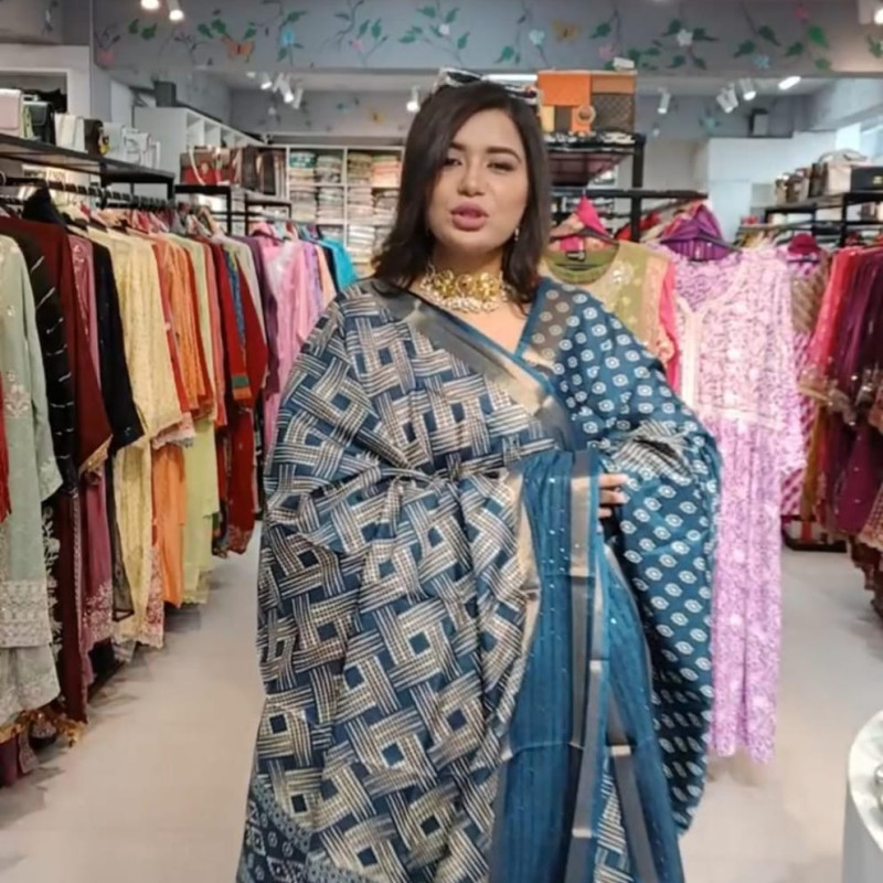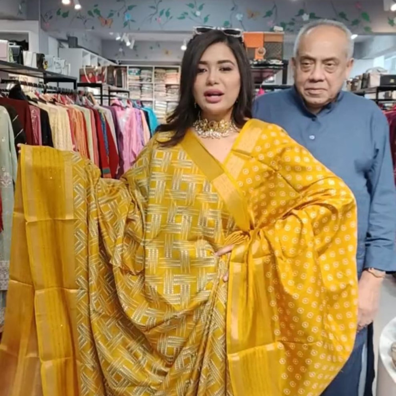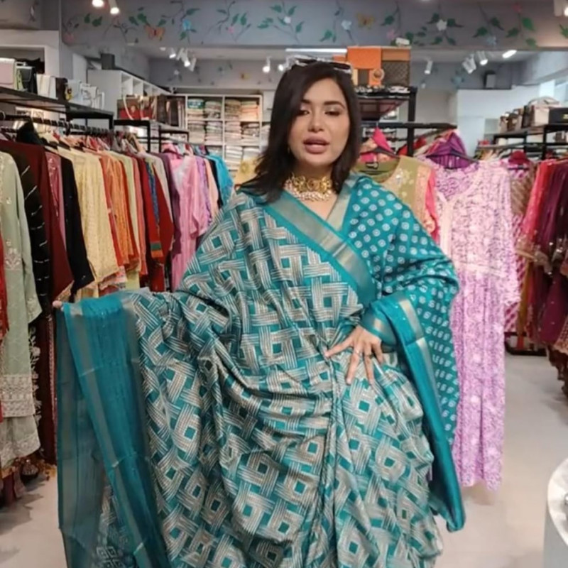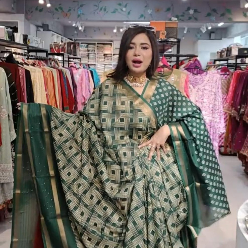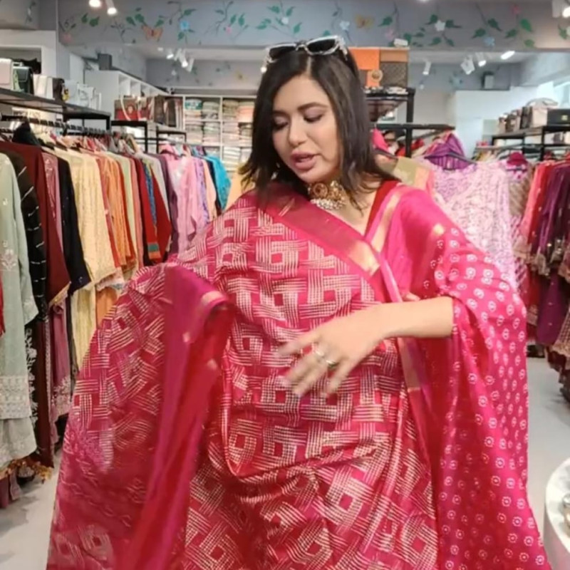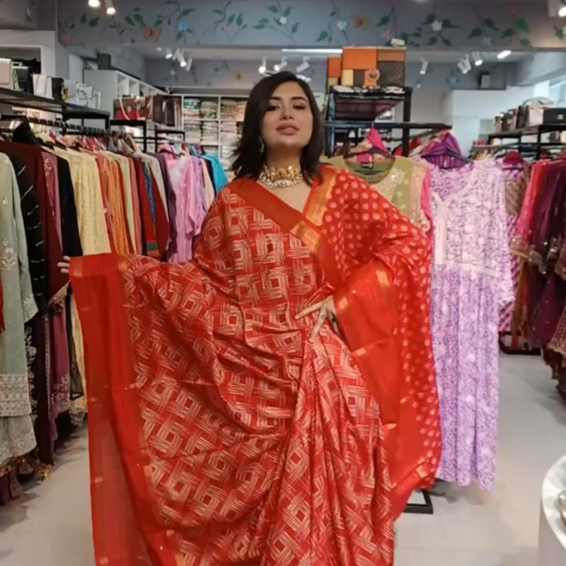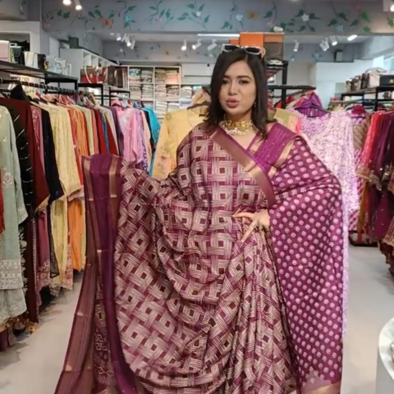 Orginal Indian Raj Silk Villa Crispy Linen Sharee with blouse piece /-