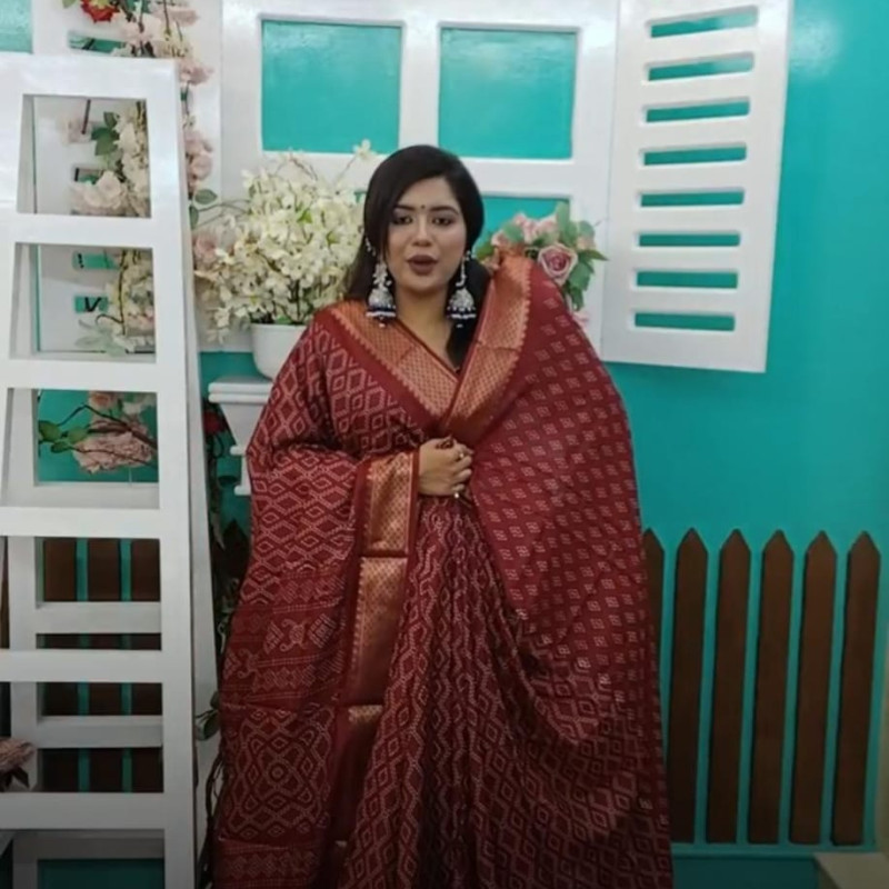 Orginal Indian Raj Silk Villa Crispy Lilen Sharee with blouse piece