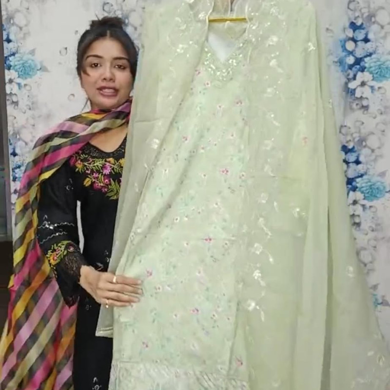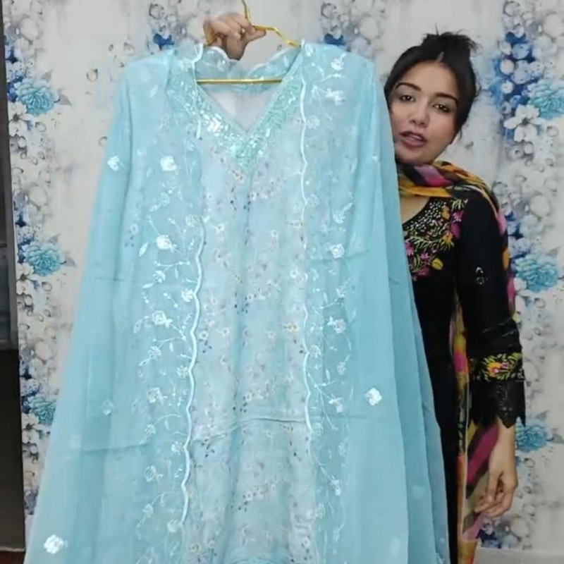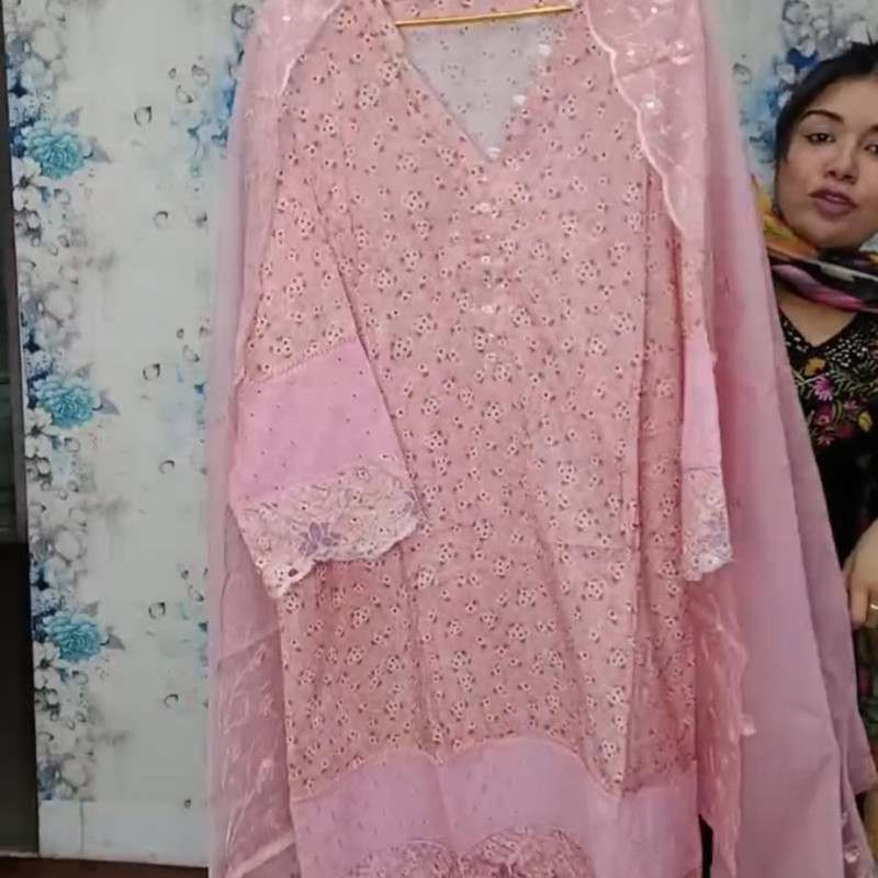 Pure Cotton Embroidery Sequence Stitch two piece Body - 46, Long - 44 /-