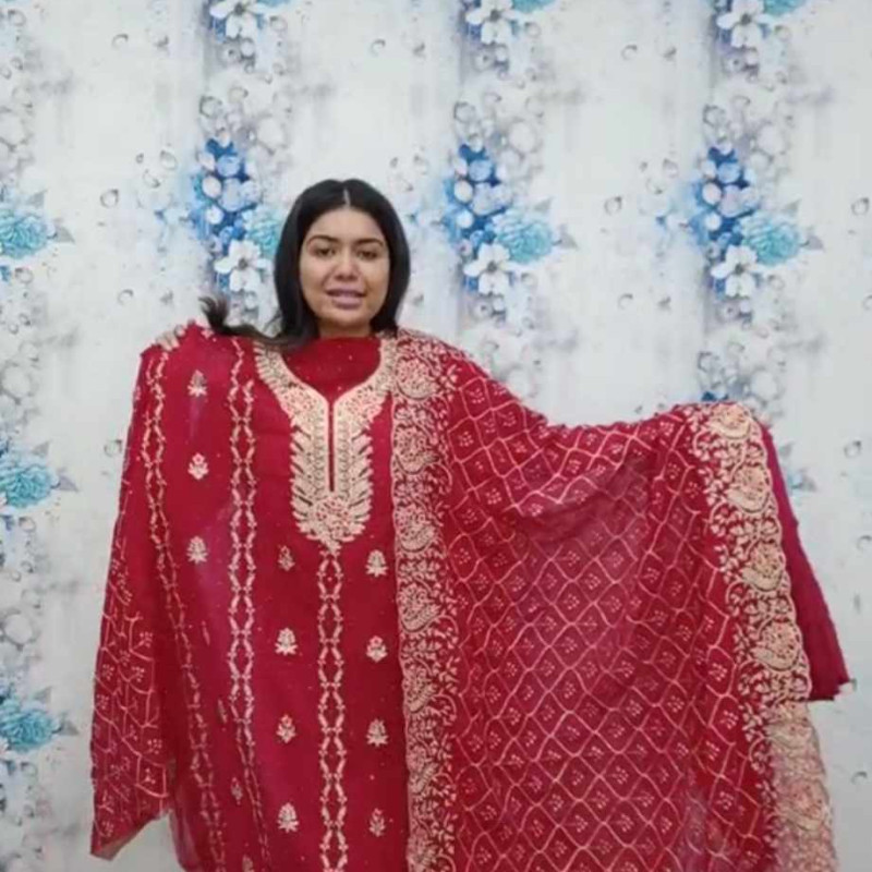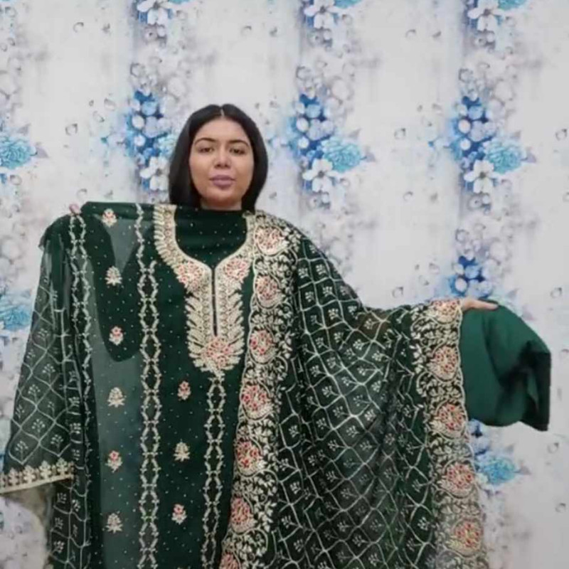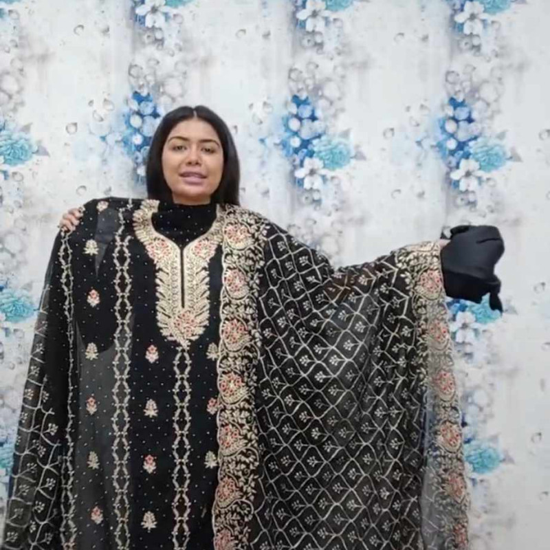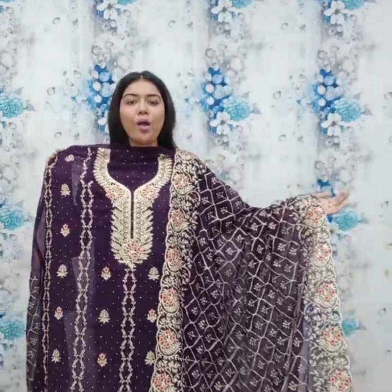 Pure Chiffon Georgette Embroidery Savoraski Stone Work four piece