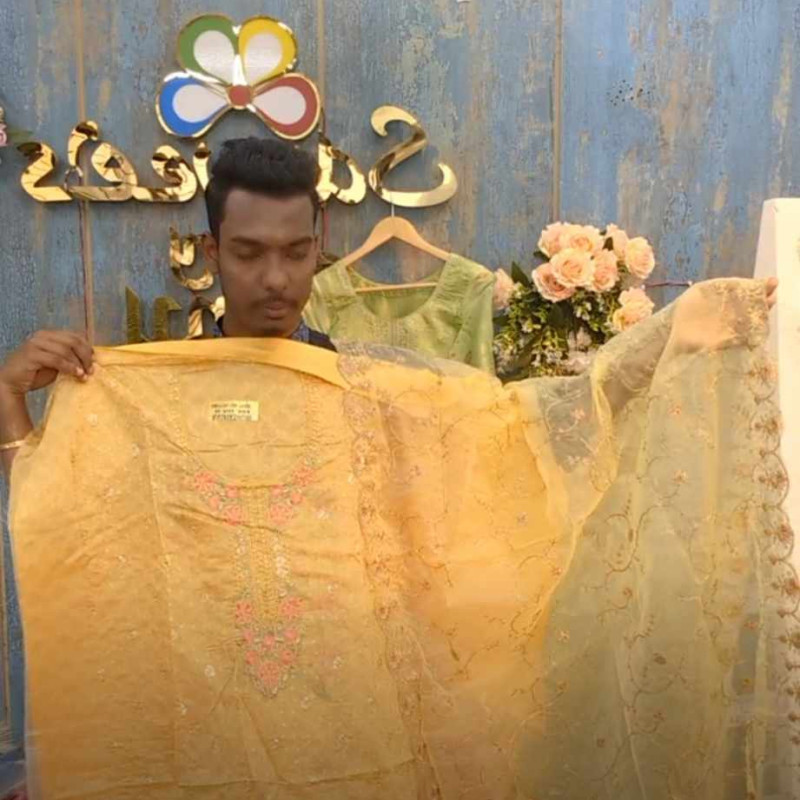 Semi Maslin Embroidery & Sequance Work Four Piece.