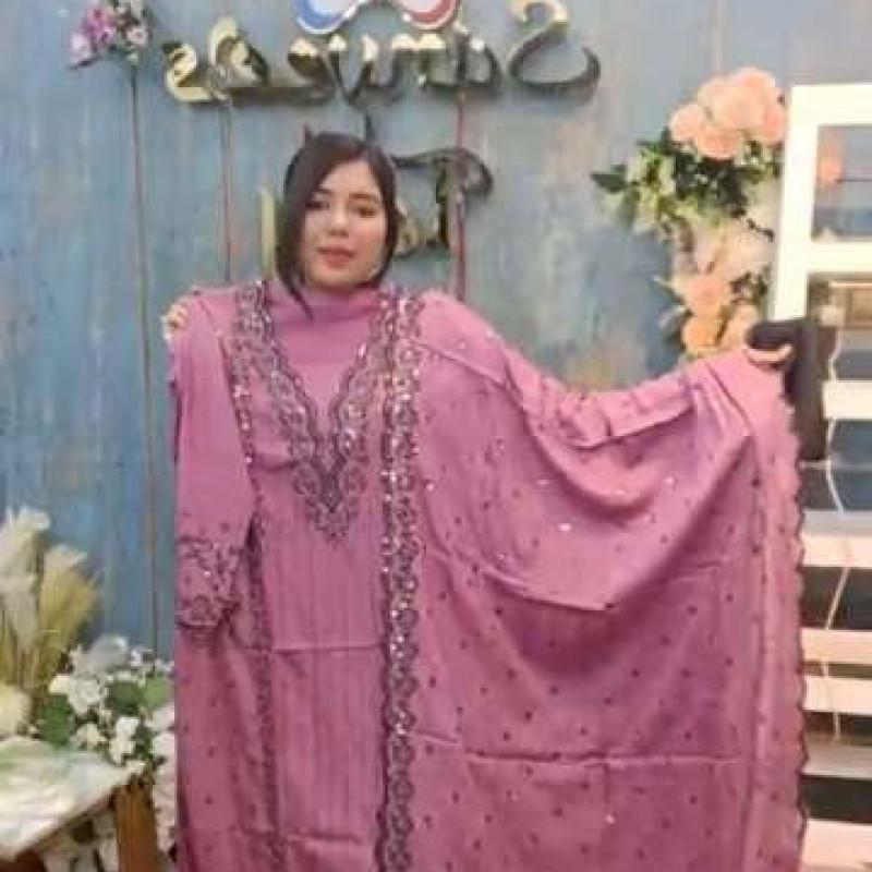 Pure Maslin Cotton Embroidery Sequence Semi Stitch three piece Body - 46, Long - 45