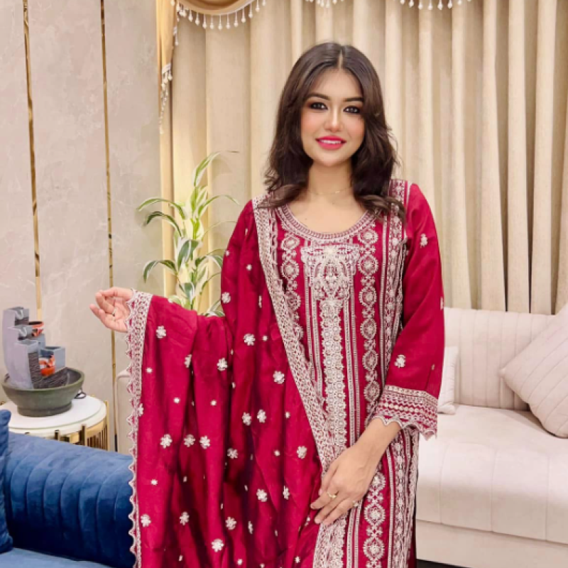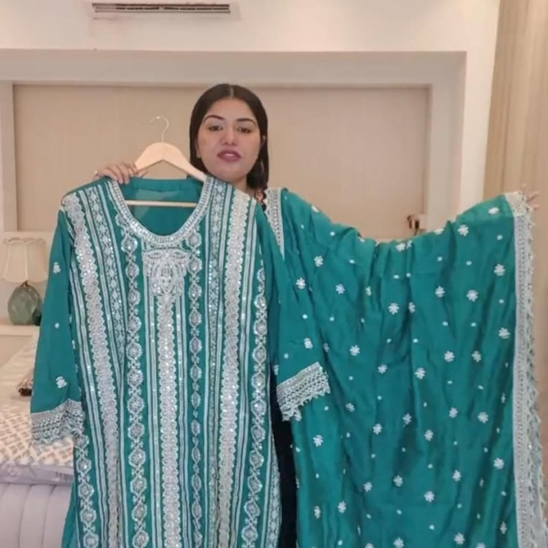 Pure Silk Embroidery Sequence Semi Stitch three piece Body - 50+, Long - 45