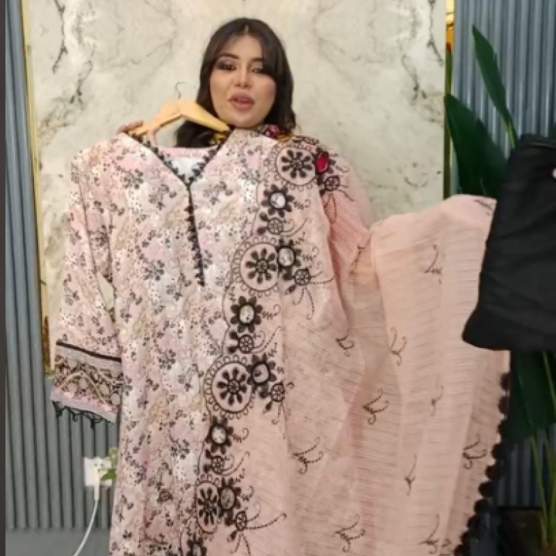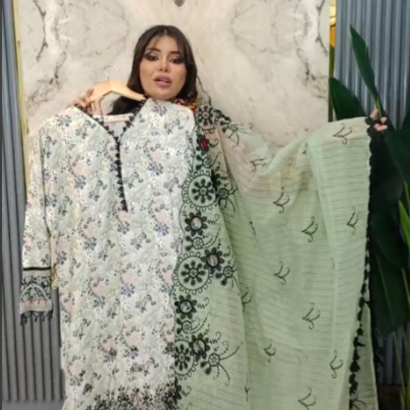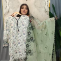 Pure Premium Cotton Embroidery Semi Stitch three piece Body - 48, Long - 45