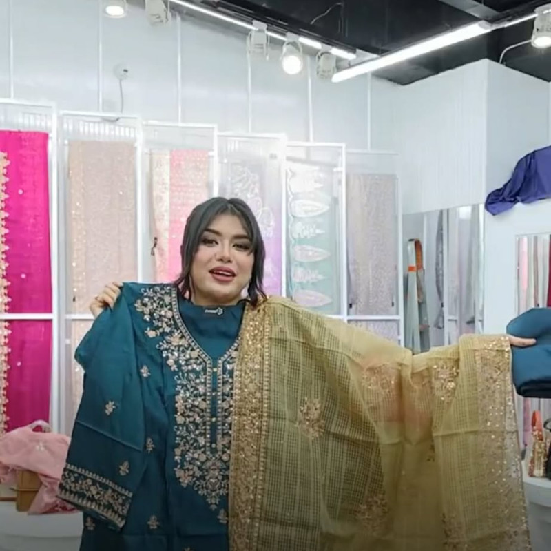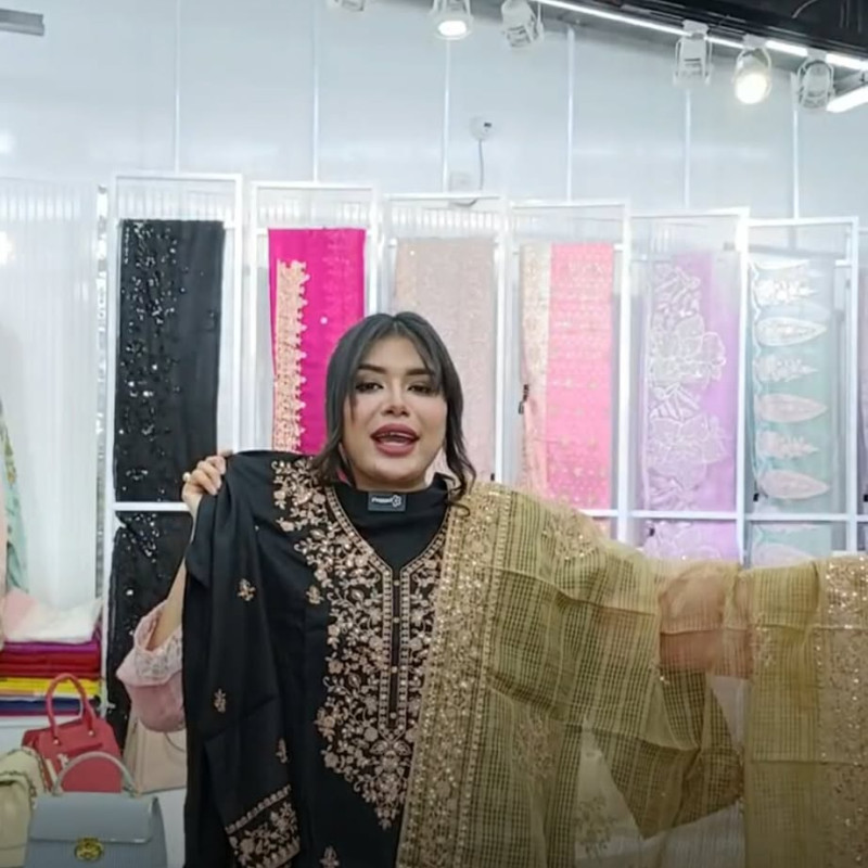 Pure Maslin Cotton Embroidery Sequence Semi Stitch three piece Body - 50, Long - 44