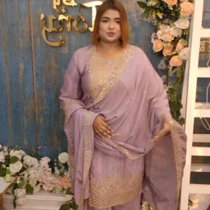 Pure Cinon Silk Stitch Three Piece ( Sharara Pant )
