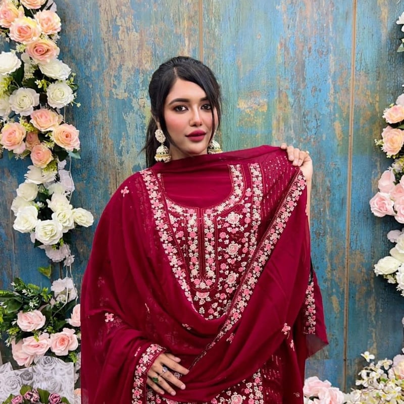 Pure Chiffon Georgette Embroidery Sequence four piece