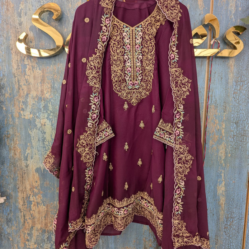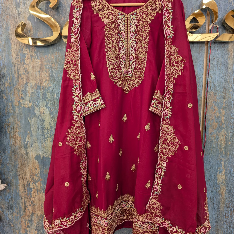 Pure Shimari Silk Embroidery Semi Stitch three piece Body - 50+, Long - 42