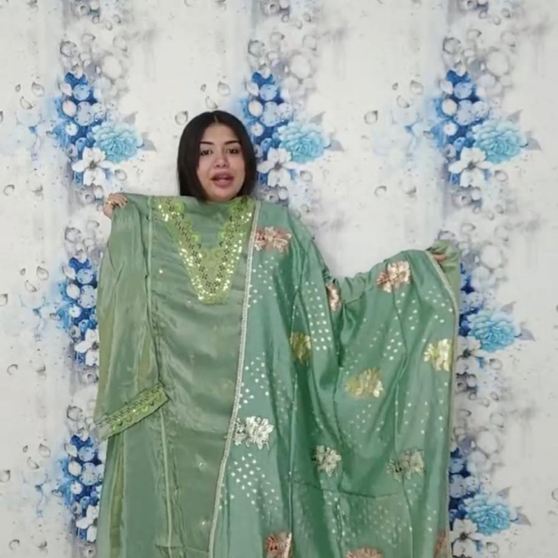 Pure Shimari Glossy Silk Embroidery Sequence three piece