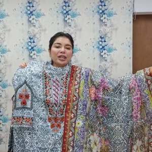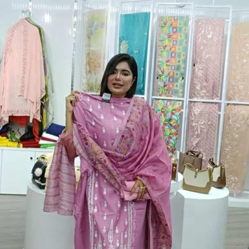 Pure Maslin Cotton Embroidery Sequence three piece /-