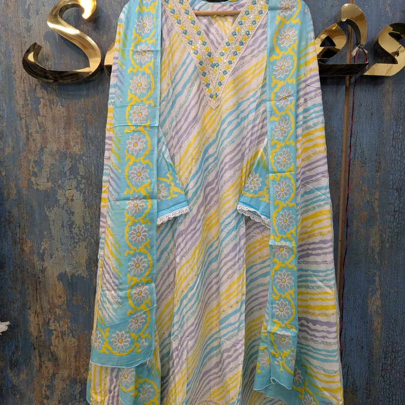 Pure Cotton Stitch Two Piece with Embroidery & Sequence Work.