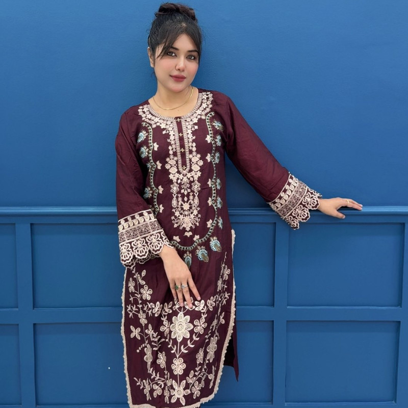 Pure Maslin Cotton Embroidery Stitch Co Ords two piece Size - M(38), L(42), XL(46), Long - 44