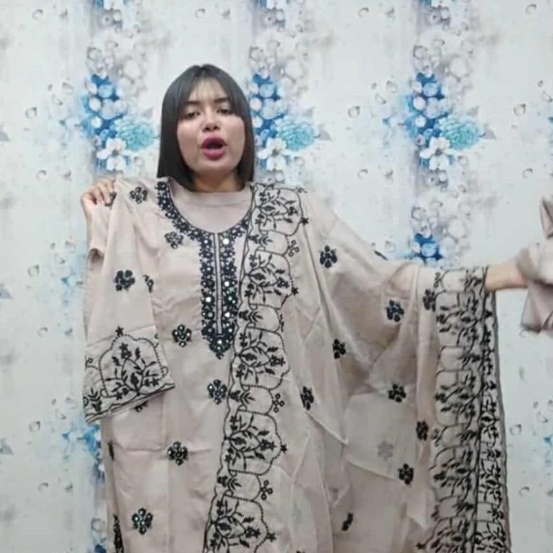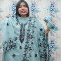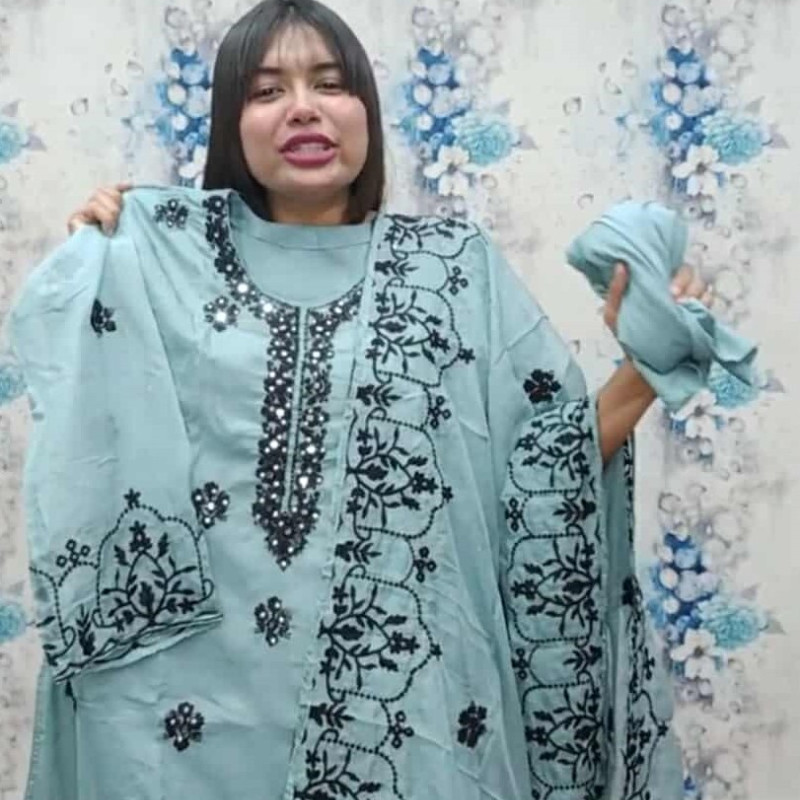 Pure Semi Maslin Embroidery Stone Mirror Work Inner Attach Semi Stitch three piece Body - 44, Long - 40