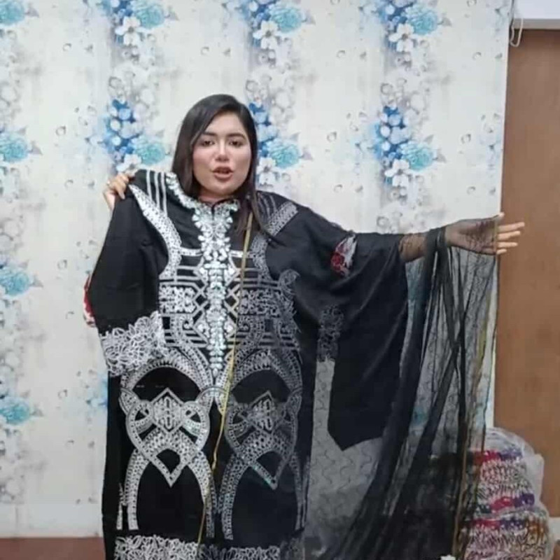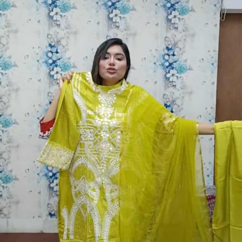 Pure Maslin Cotton Chikenkari Embroidery Sequence Inner Attach Stitch three piece Body - 50, Long - 46/-