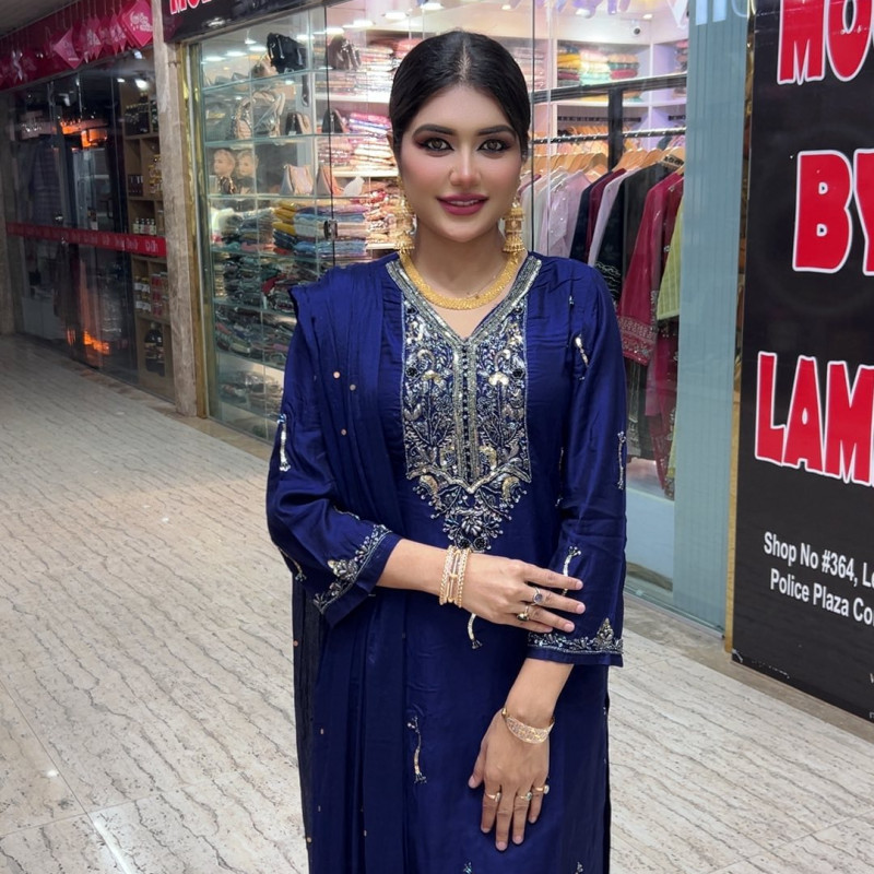 Pure Maslin Cotton Tie Dye Karchupi Stone Work Stitch three piece Body - 50, Long - 43