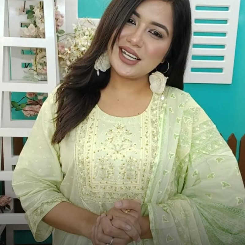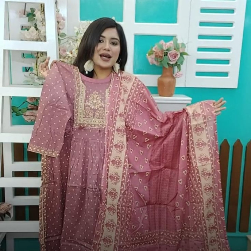 Pure Cotton Embroidery Sequence Stich Gawn two piece Body - 44 / Long - 46