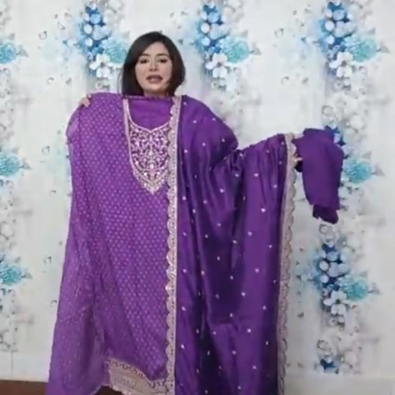 Orginal Indian Vinay Tasor Silk Embroidery Sequence four piece