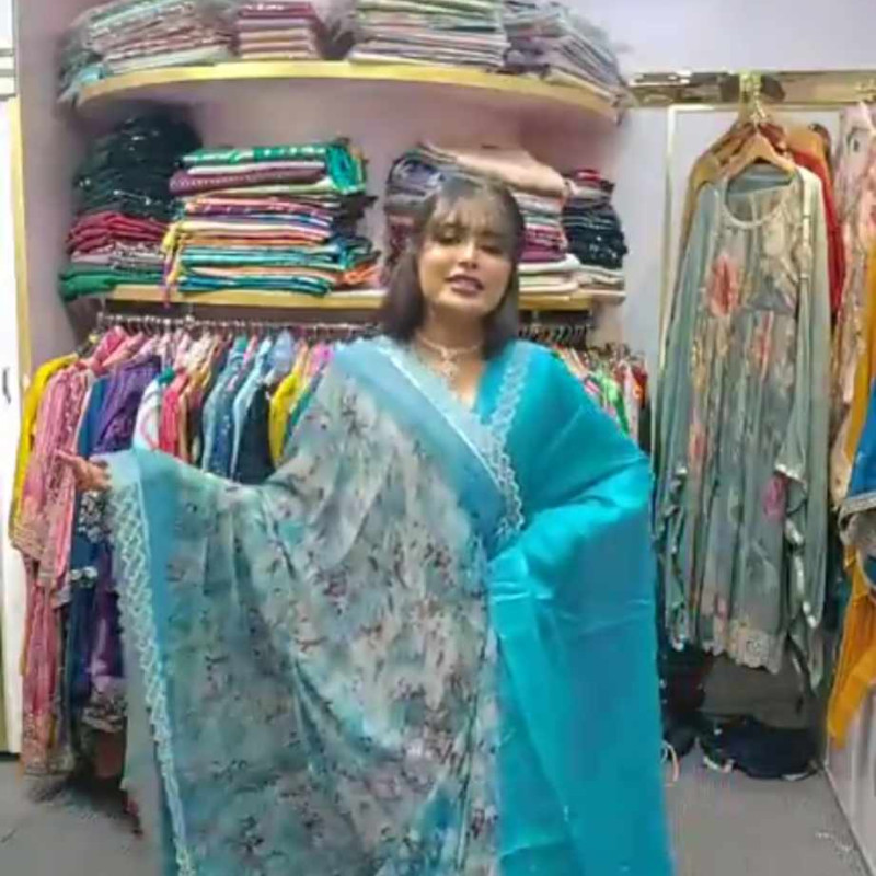 Orginal Indian Pure Chiffon Georgette Stone Work Sharee with blouse piece /-