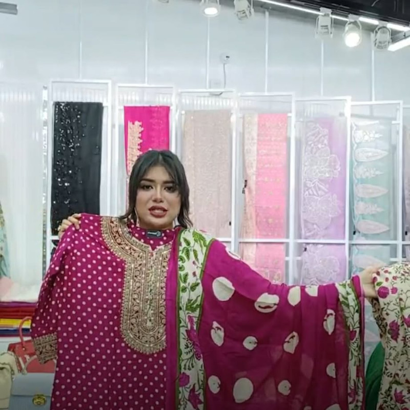 Pure Maslin Cotton Embroidery Sequence Stitch three piece Body - 46, Long - 43