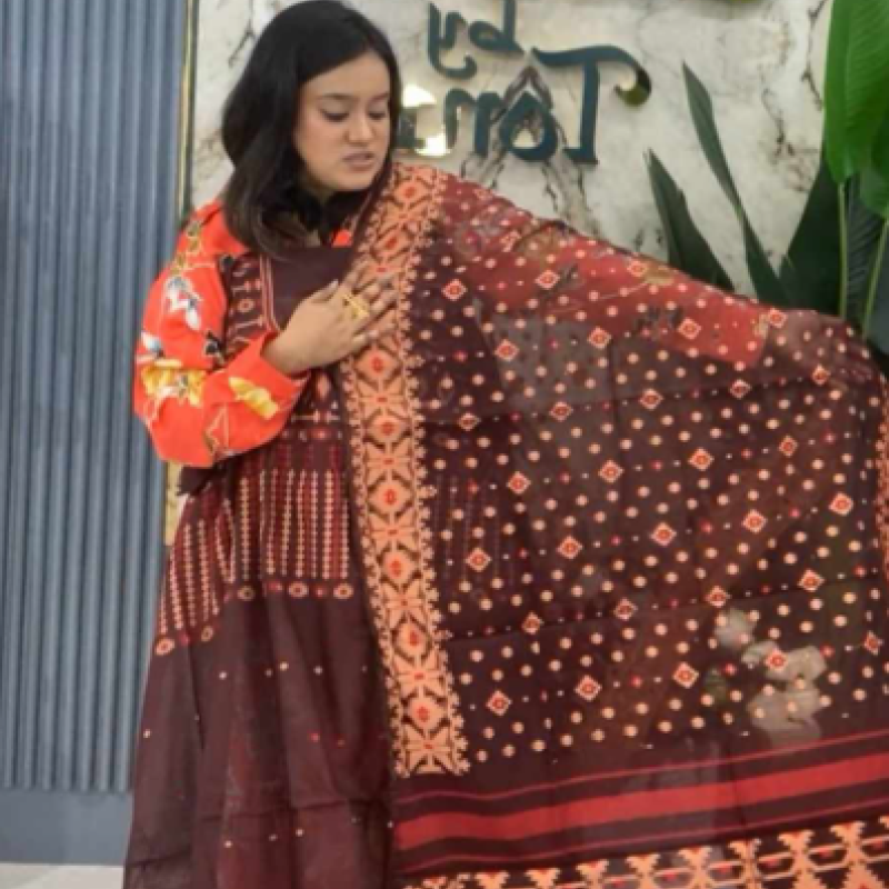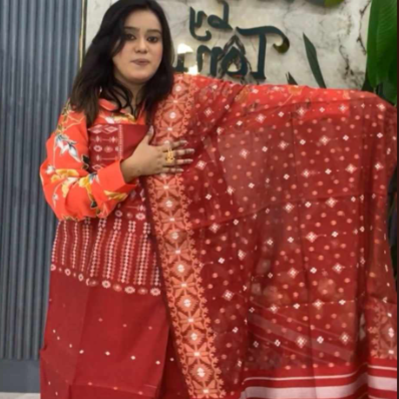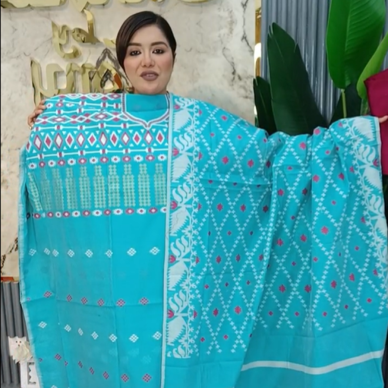 Pure Half Silk Cotton Tat Jamdani three piece