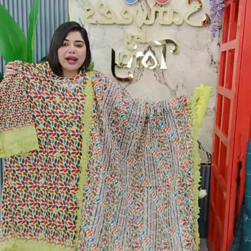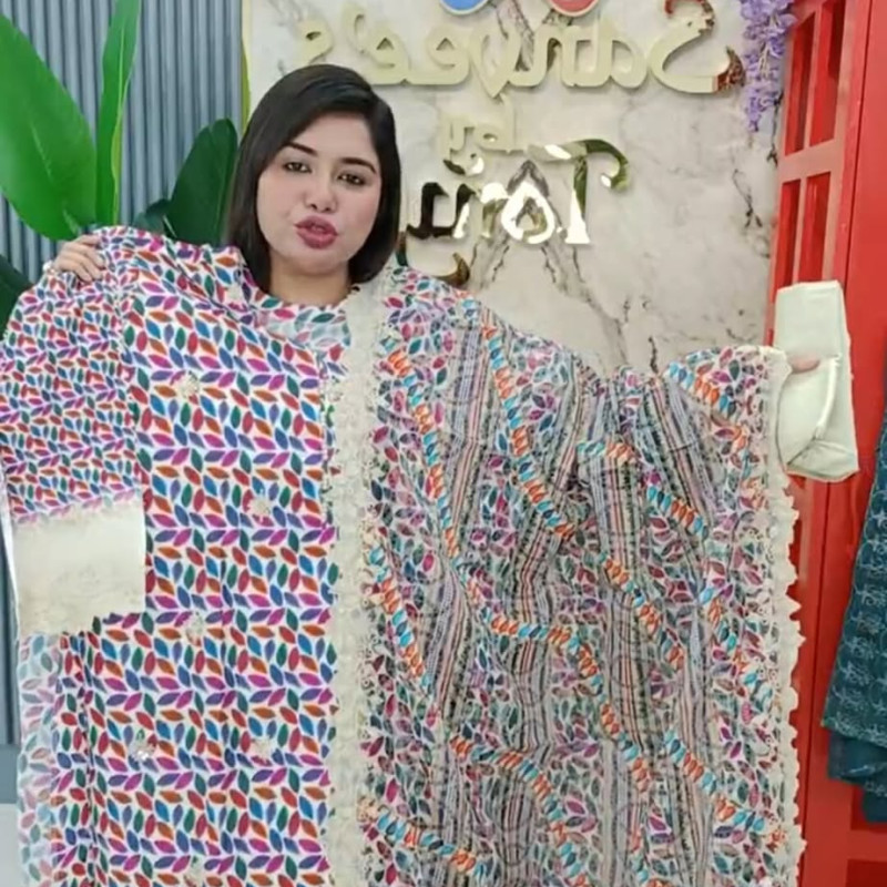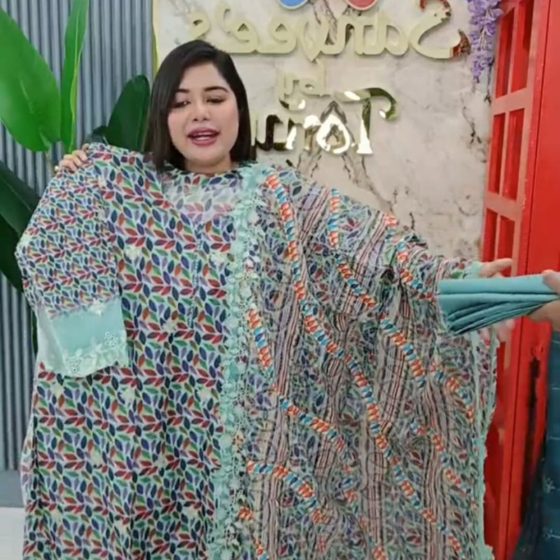 Pure Cotton Chikenkari Embroidery Sequence Semi Stitch three piece Body - 52, Long - 45 /-