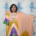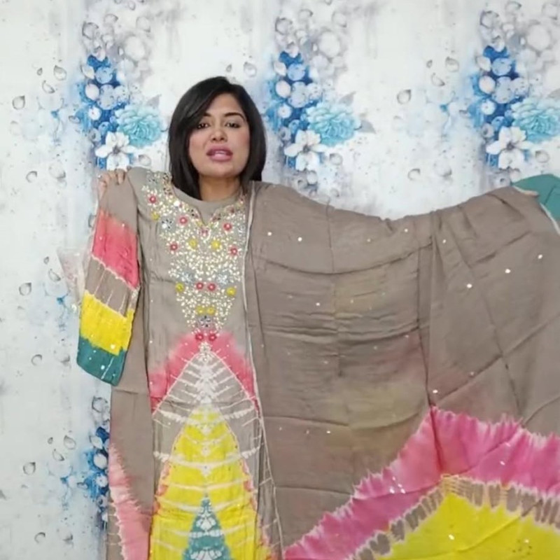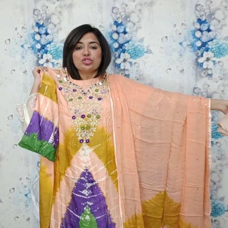 Pure Linen Tie Dye Karchupi Stone Mirror Work Semi Stitch three piece Body - 50, Long - 45